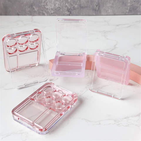 علبة ظلال عيون بلاستيكية 12 جرام علبة فارغة ستة ألوان شبكة عبوة مستحضرات تجميل وردية قابلة لإعادة التدوير